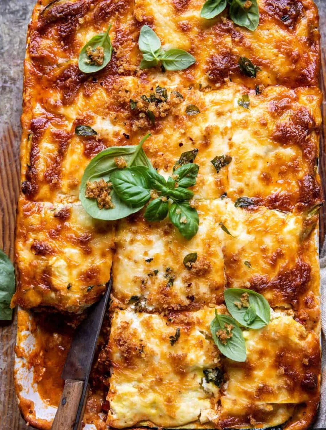 “Zucchini” noodles, a red meat sauce and ricotta, Parmesan layers.